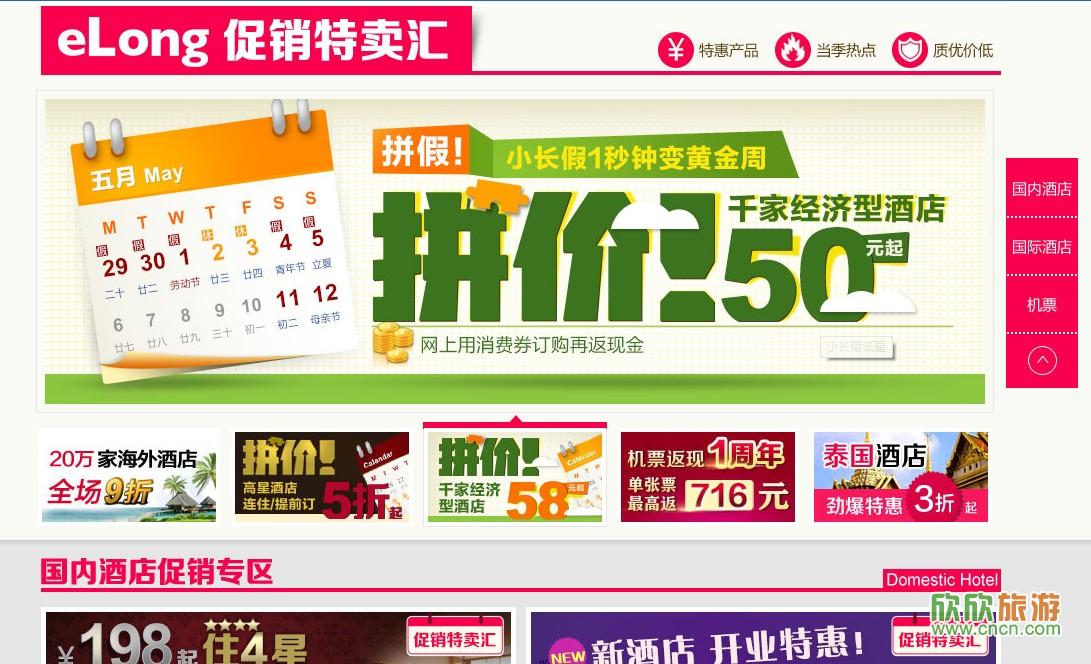 艺龙旅行网页面