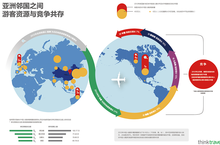 2012年对印度为目的地搜索增长21%,对泰国搜索增长19%,对土耳其搜索增长13%,对新加坡搜索增长10%,对中国搜索仅增长7%。