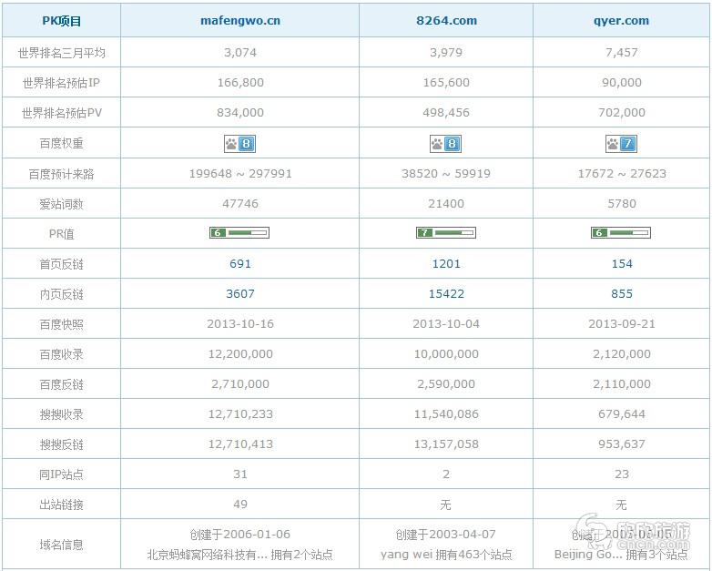 先粗略看一下网站一些数据对比,数据都是估算,与实际数据可能有差别,但还是可以参考一下,从中我们可以看出一些区别,得出一些结论。