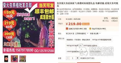 七夕节成萤火虫“七夕劫” 网上售出千万只(图)