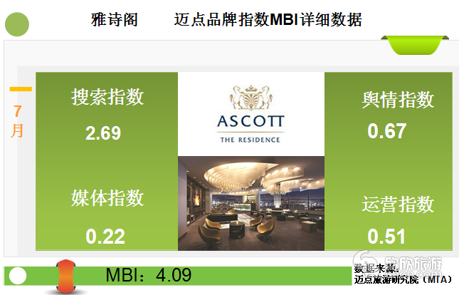 迈点品牌指数MBI(酒店品牌部分)是由迈点网独家发布,用以反映一段时期内酒店品牌在互联网和移动互联网的影响力的指标数据,可为企业及行业相关人士分析品牌传播及营销管理提供参考。迈点品牌指数MBI主要从搜索指数、舆情指数、运营指数、媒体指数4个维度分析品牌在互联网和移动互联网的在影响力。这是迈点网基于迈点旅游研究院自主开发的“迈点品牌指数监测系统” Meadin Brand Index Monitoring System(MBIMS)提供的一项免费数据分析服务。