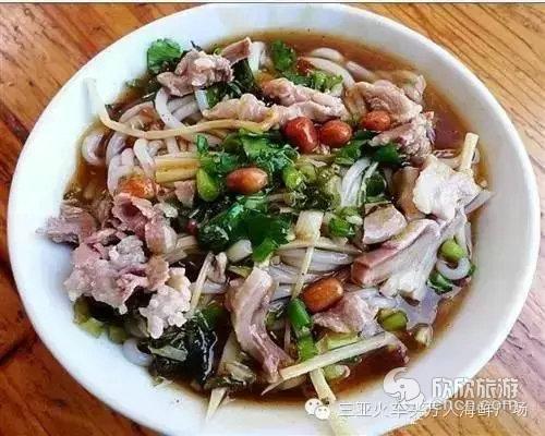2.抱罗粉,海南著名地方风味小吃,以大米粉条配靓汤及多种佐料调制而成。粉身洁白柔软爽滑,汤热味鲜,佐料奇香耐咀嚼,不膻不腻,鲜香略带酸辣,诱人食欲,一定要汤粉哦,那才是正宗抱罗粉。在三亚火车头万人海鲜广场小吃摊位能吃到抱罗粉。