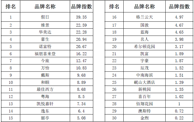 1.全服务中档酒店品牌风云榜TOP20
