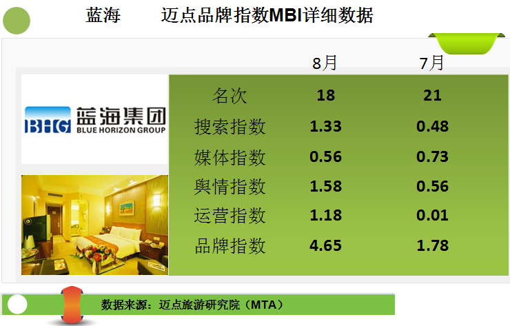 迈点品牌指数MBI(酒店品牌部分)是由迈点网独家发布,用以反映一段时期内酒店品牌在互联网和移动互联网的影响力的指标数据,可为企业及行业相关人士分析品牌传播及营销管理提供参考。迈点品牌指数MBI主要从搜索指数、舆情指数、运营指数、媒体指数4个维度分析品牌在互联网和移动互联网的在影响力。这是迈点网基于迈点旅游研究院自主开发的“迈点品牌指数监测系统” Meadin Brand Index Monitoring System(MBIMS)提供的一项免费数据分析服务。
