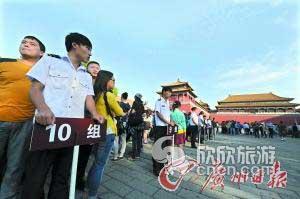 单霁翔告诉记者,为解决“故宫跑”的问题,故宫工作人员赶制了1000个号码牌,从19日起分组领号排队进场参观。观众按照先后顺序先领取号码牌,在进入午门之后,还会在武英殿门口再验一次号牌,保证号码牌靠前的观众先进入展厅,而且会有工作人员带领参观,按顺序往里走。