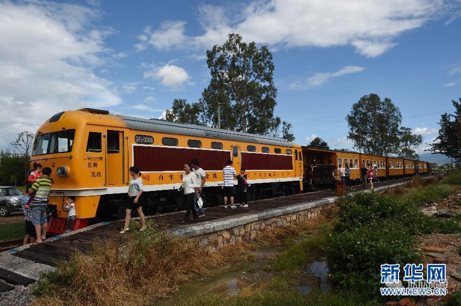 【导读】9月27日,一列小火车停靠在乡会桥民国老车站。仲秋时节,云南省红河哈尼族彝族自治州建水县旅游部门与昆明铁路局合作,推出米轨铁路特色旅游专线——建水古城怀旧小火车观光游。游客们可乘坐改装后时速20...