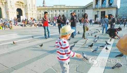 国庆期间笔者的欧洲之行第一站就是米兰多姆大教堂,怀着一颗圣洁的心参观完教堂走出大门,4岁的孩子立刻被广场上大群的鸽子吸引住了(如图),高兴地跟在鸽子后面追逐玩耍。这时,一个小伙子走过来,往孩子手里塞了一把喂鸽子用的玉米粒,小朋友追得正开心,压根没注意是谁递给他玉米粒,乐滋滋地抓过来就喂鸽子。趁孩子玩得不亦乐乎,小伙子试图继续往孩子身边的大人手里塞玉米粒,这时笔者已隐隐感觉不对劲,但心想一把玉米粒也没多少钱,就没有阻止孩子的玩乐。