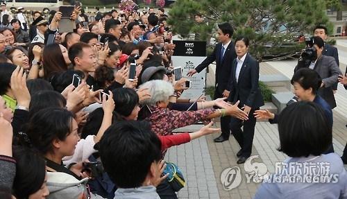朴槿惠在总统府偶遇中国游客 用汉语打招呼(图)