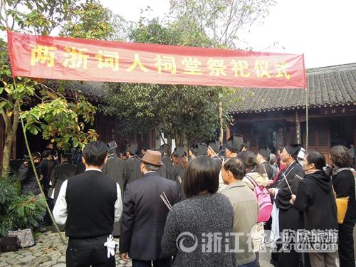 “词客有灵应识我,西湖虽好莫题诗。”两浙词人祠堂在每年霜降后的十天都要举行祭祀仪式。祭祀过后,是西溪文化研究会和两浙词社组织的雅集活动,词学专家们或吟诵古人旧词或挥毫写就新诗,在民乐演奏和越剧表演的氛围下,重续古人“名儒骈萃,慧业绍承,洋洋风雅,尤擅倚声”的词坛风雅。
