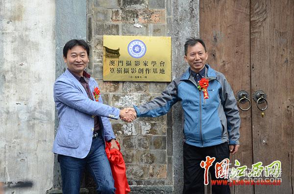 中国江西网讯记者晋帅兵、实习生胡楚巧报道:11月12日,30余名来自江西和澳门的摄影家齐聚婺源篁岭开展摄影创作。当日上午,“澳门摄影学会摄影创作基地”正式进驻婺源篁岭,景区董事长吴向阳和澳门摄影家学会前理事长张耀棠共同为基地揭牌。