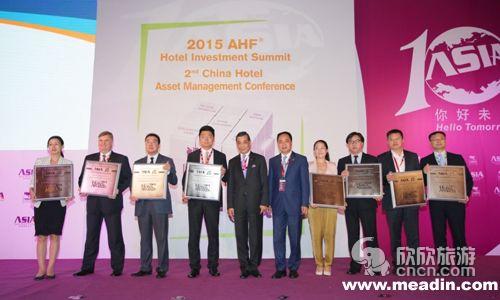中南商业集团•金石世苑酒店有限公司荣获2015亚洲酒店大奖中荣获“年度最具成长性酒店集团”称号(左三)