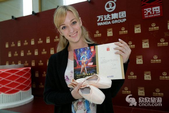“唐琮洋塔雅,你们好!这是一双来自万达的舞鞋,希望你们能穿着这双舞鞋,代表汉秀、代表中国为世界演绎出最美的表演。”