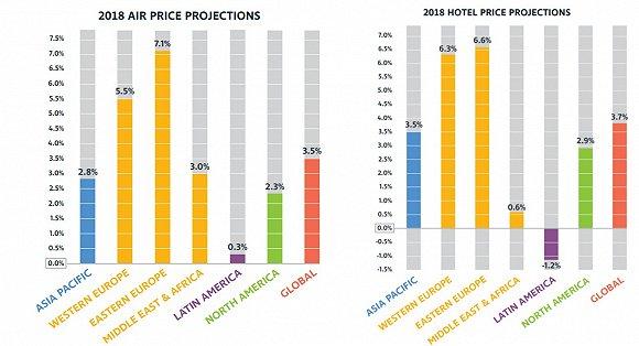 报告就2018年全球不同地区机票和酒店价格变化的预测
