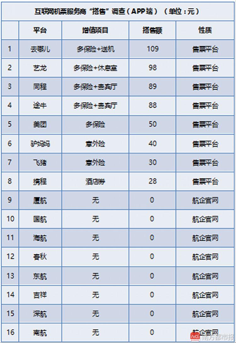 早在今年8月,南都就曾对网售机票搭售乱象进行报道。当时,南都记者对16家在线售票的app进行测试发现,除了第三方售票平台外,还有三家航企官方APP上也存在系统自动勾选“航空意外险”和“延误险”等违规行为。(→网络搭售是潜规则?15家平台11家这么干)