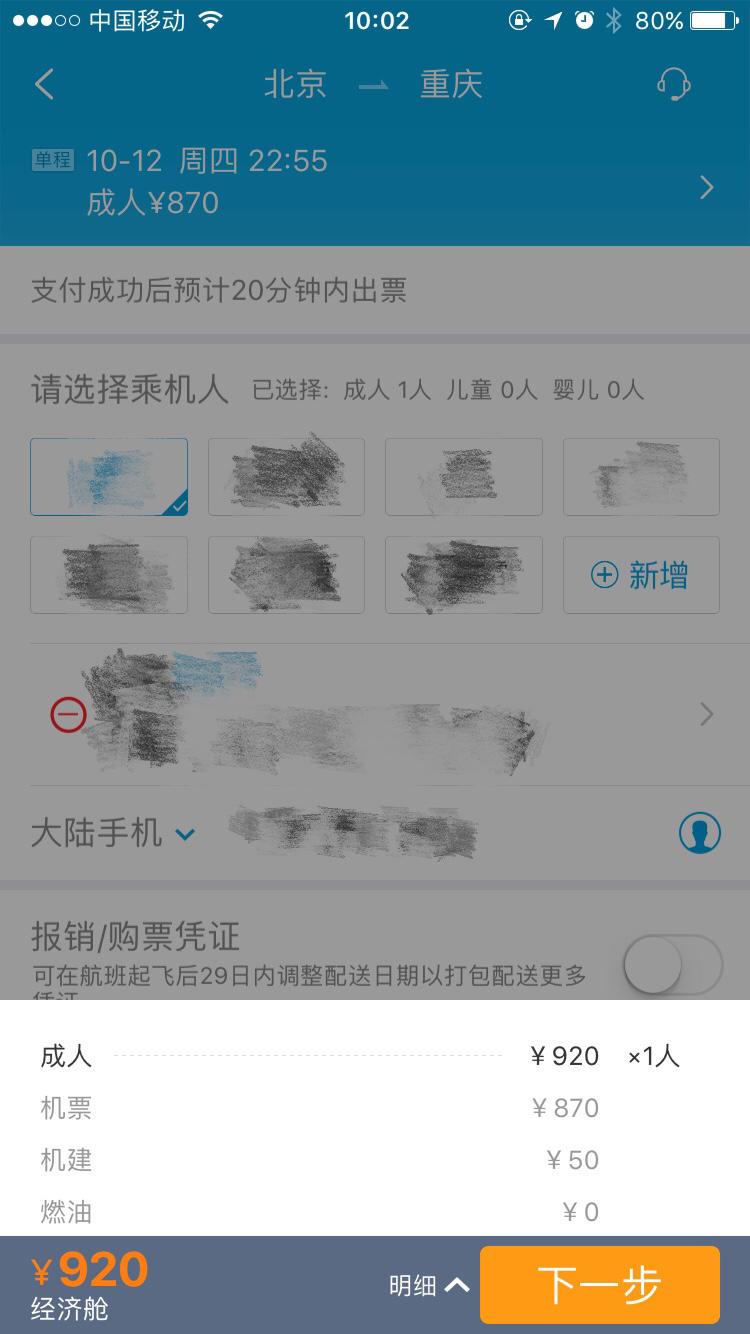 进入预订界面三秒后,系统会在总订单里自动添加一份 30 元的航意险,这时可以手动取消掉这项费用。