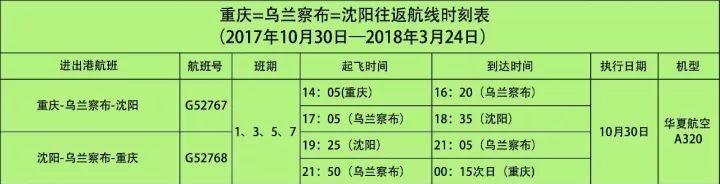 适用航班:华夏航空执飞的重庆=乌兰察布=沈阳航班