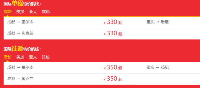 而国际往返特价航线(不含税),从330起,简直是西南的福音。