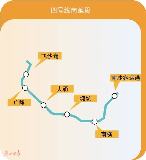 据了解,四号线南延段的建成,将使南沙客运港能直接连通广州市区,缩短沿线各组团及南沙自贸区与中心城区间的时空距离,此外,还将大大缩短南沙客运港到金洲站的交通距离,为沿线居民提供快捷的轨道交通服务,提升沿线地区居民的公交出行比例。