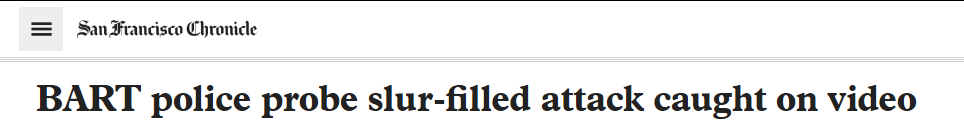 《旧金山纪事报》(San Francisco Chronicle)旧金山湾区捷运特警调查种族攻击视频事件。