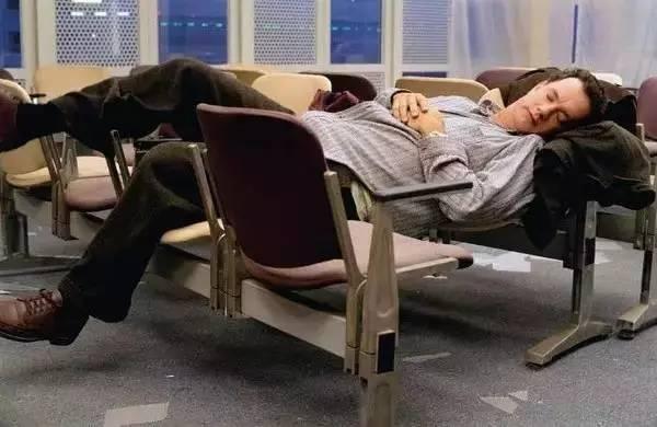 电影《幸福终点站》剧照,汤姆·汉克斯扮演的维克特滞留机场生活。