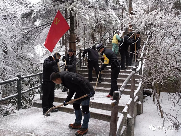 冰雪天气还没结束,黄山人将克服麻痹大意思想,发扬连续作战精神,坚持再坚持,挺住再挺住,为景区恢复开放、广迎四海宾朋做好充分准备!