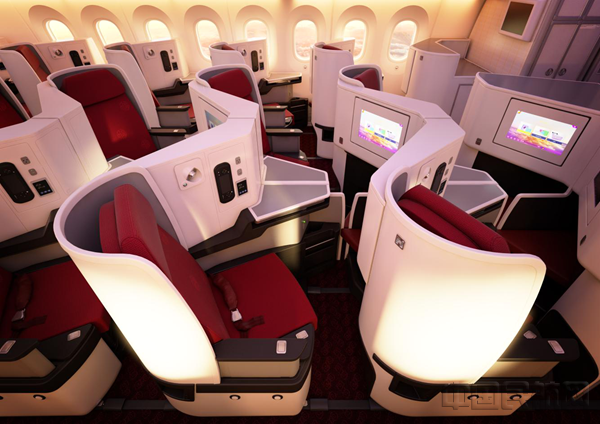 海南航空波音787梦想客机公务舱反鱼骨式座椅