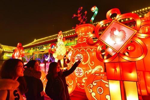 资料图片:2017年1月31日,游客在河北定州州署崇文街迎春灯展上观赏花灯。新华社记者 朱旭东 摄