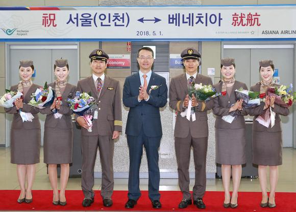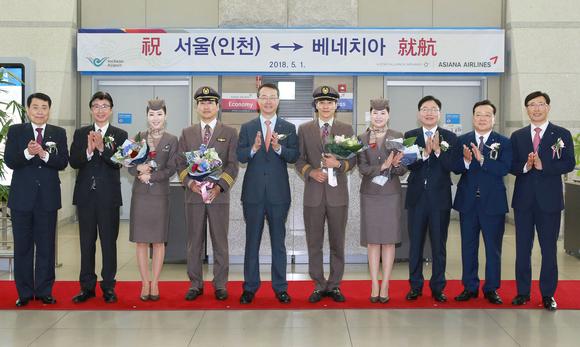 5月1日,韩亚航空正式开通仁川-威尼斯首航,并在仁川机场举行了仪式。韩亚航空社长金秀天及相关工作人员出席仪式。