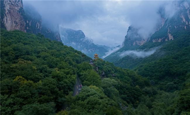 金蟾峰下,一汪碧绿如翡翠的湖泊倒映着千年云影。这方被唤作翡翠塘的圣湖,因中国山水画宗师荆浩(号洪谷子)在此隐居创作而得名。史载荆浩曾携弟子临湖而坐,钓竿轻垂间,墨色在宣纸上晕染出《匡庐图》的磅礴气象。如今湖畔立有荆浩画院,游客可见现代画家延续古法,以青绿山水技法临摹湖光山色。