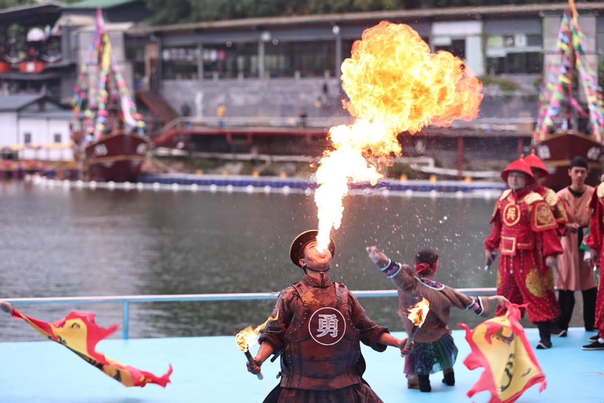恢弘历史沉浸感受!大型全景特效秀《林则徐1839》隐贤山庄震撼试演