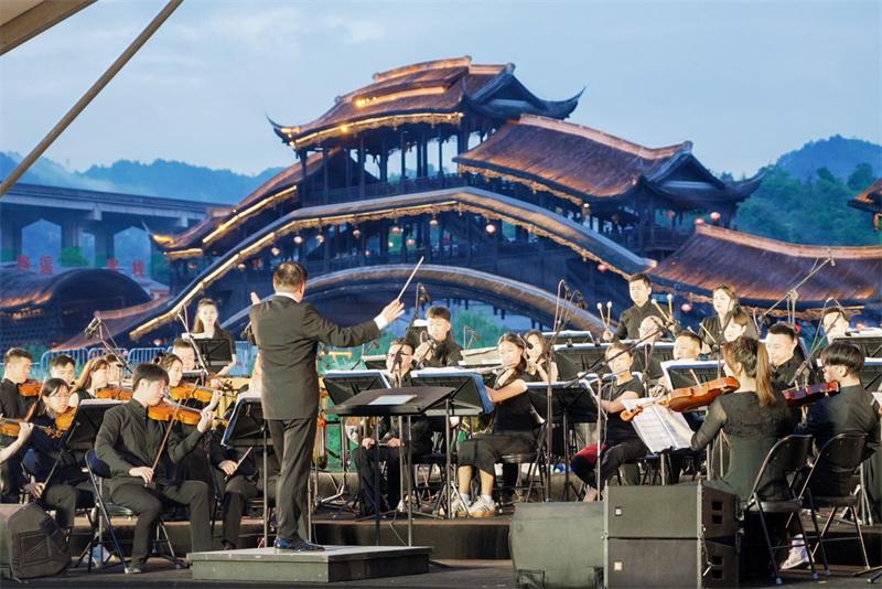 6月30日晚,“从香江到黔江——2025·渝港情深”交响音乐会在黔江濯水花田璀璨启幕。在盛夏的微风中,来自香港青年乐团与重庆交响乐团的艺术家们,以山水为幕、廊桥为台,奏响了一曲跨越山海的深情乐章,共绘渝港文旅合作新画卷。