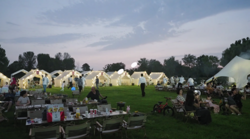 当最后一缕阳光吻过葡萄架,萤火虫的舞会正式开场。DIY 烧烤的烟火里,羊肉串滋滋冒油,油脂溅在炭火上的 “滋啦” 声里,裹着沁人的青草气息,馋得人直咽口水。音乐会的旋律缠着晚风,在葡萄藤间打了个结,连萤火虫都放慢翅膀跟着晃悠。篝火 "噼啪" 跳着舞,竹竿舞的脚步声敲得大地咚咚响,突然 —— 成百上千只萤火虫同时腾空!